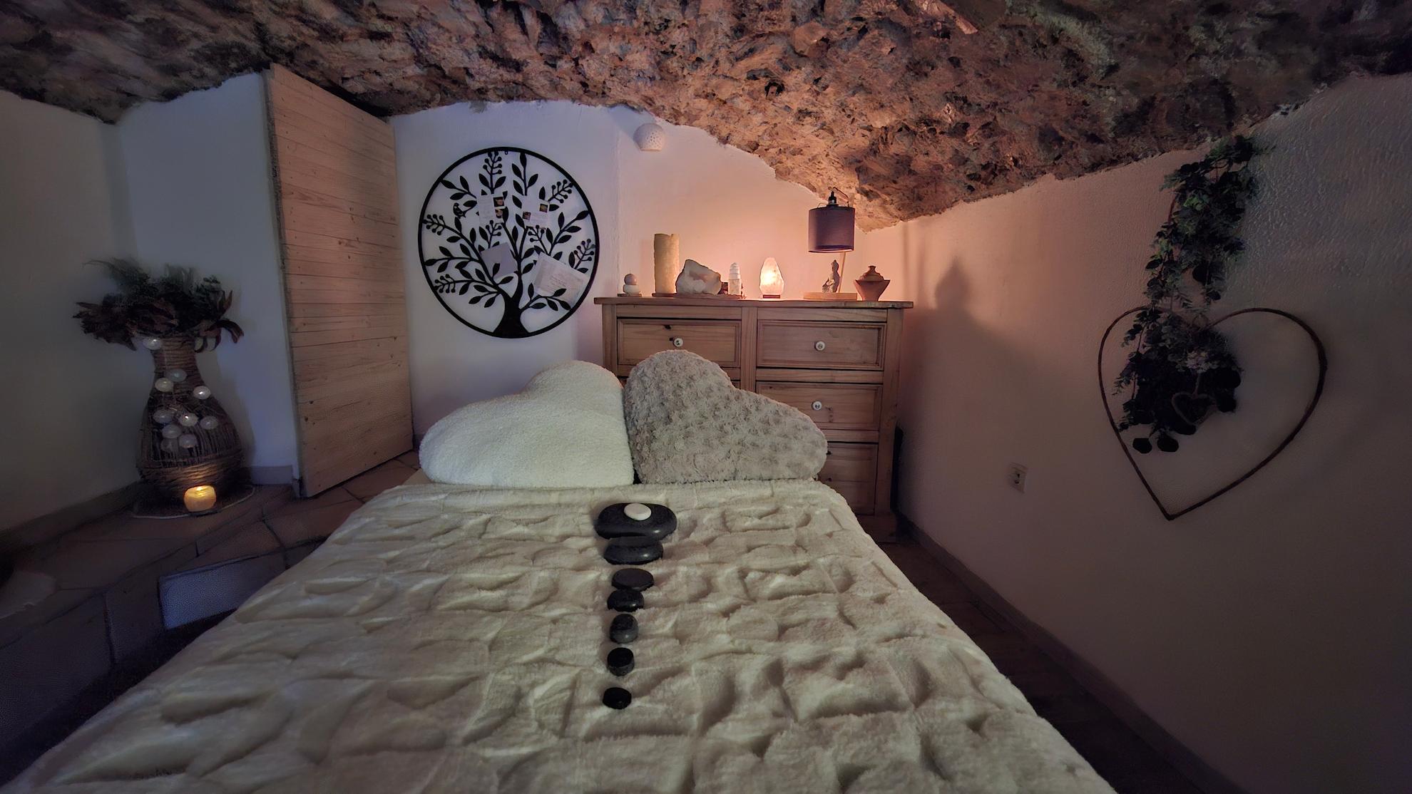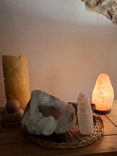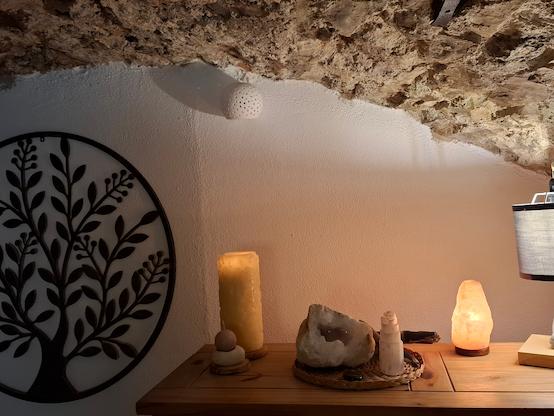 Le Petit Salon Relaxant - Écrin Minéral est un lieu intimiste et chaleureux, inspiré par la pierre, la matière et la nature.